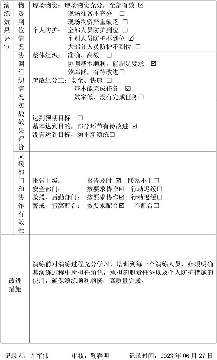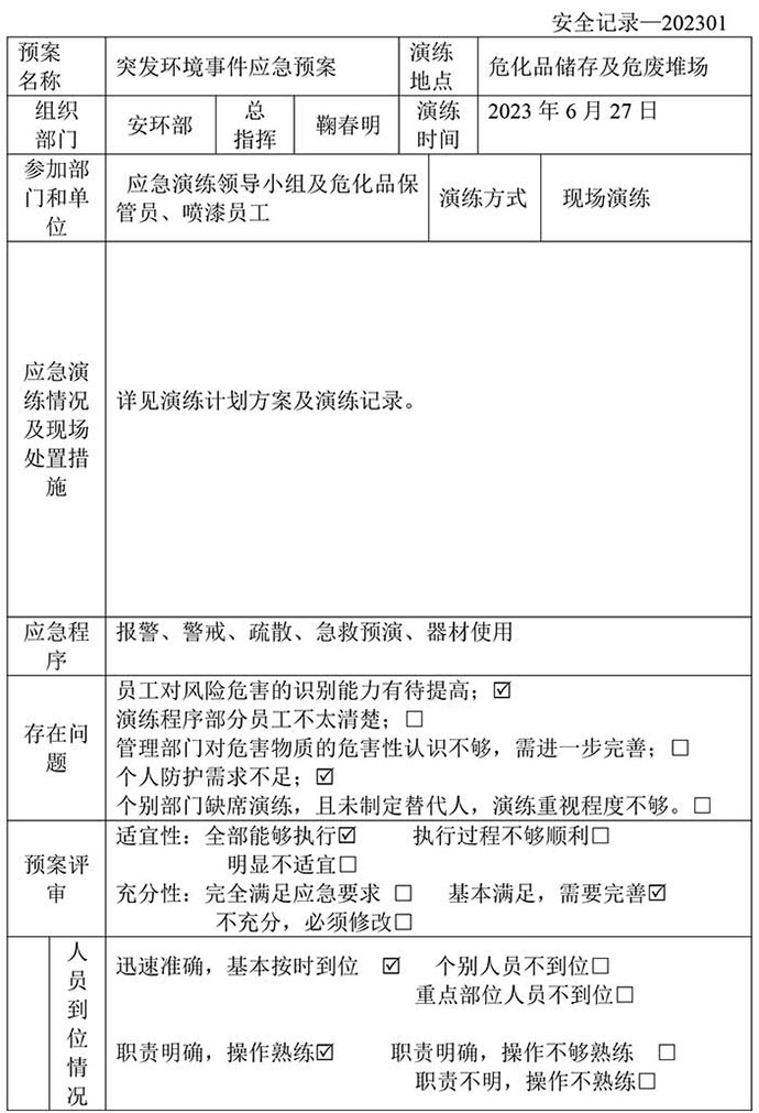 無錫四方友信股份有限公司危廢意外事故應急預案演練記錄